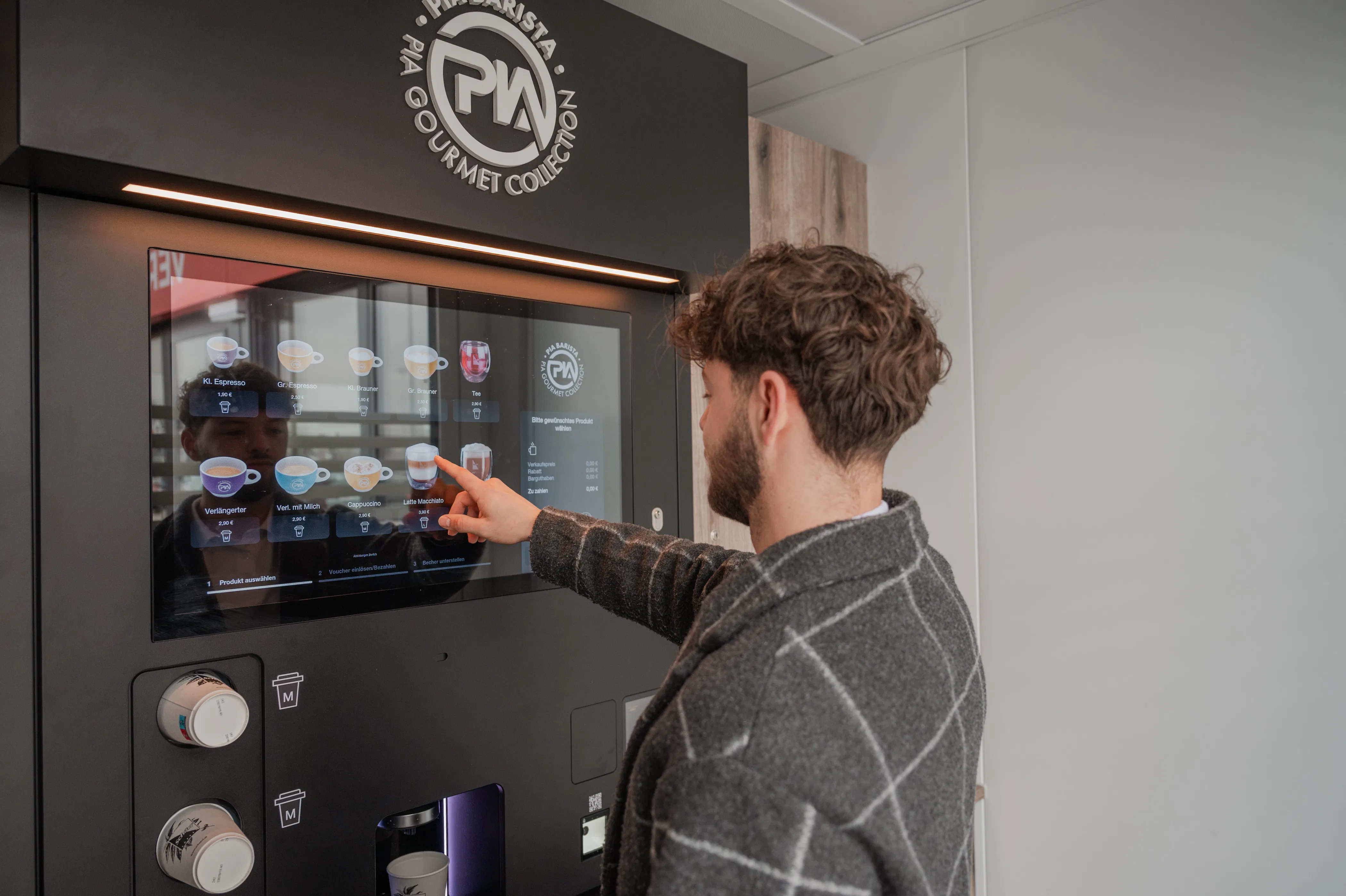 Entwickelt in Zusammenarbeit mit Schärf & Sons, bietet unser Kaffeekonzept eine sorgfältig ausgewählte Palette an exquisiten Kaffeevariationen aus der PIA Barista Gourmet Collection, die du an unseren Selbstbedienungsmaschinen genießen kannst.