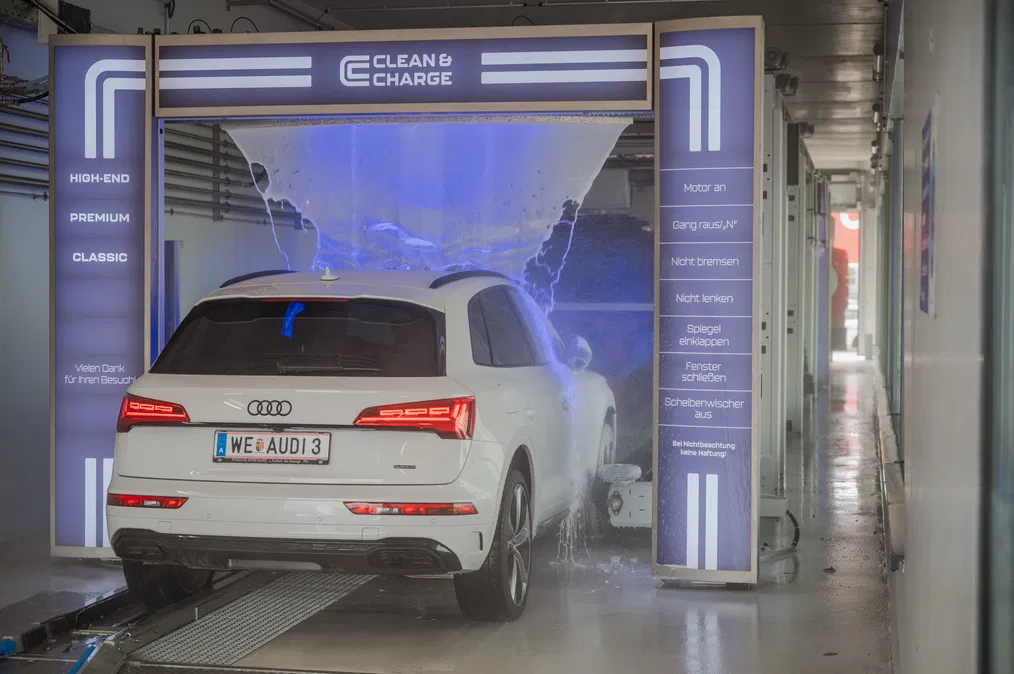 Bei Clean & Charge verstehen wir gründliche Außenwäsche nicht nur als Mittel zur Reinigung, sondern als wichtigen Beitrag zum Schutz und somit zur Werterhaltung deines Autos. Deshalb verwenden wir in unserer Waschstraße modernste Technologien mit hochwertigen Reinigungsmitteln.